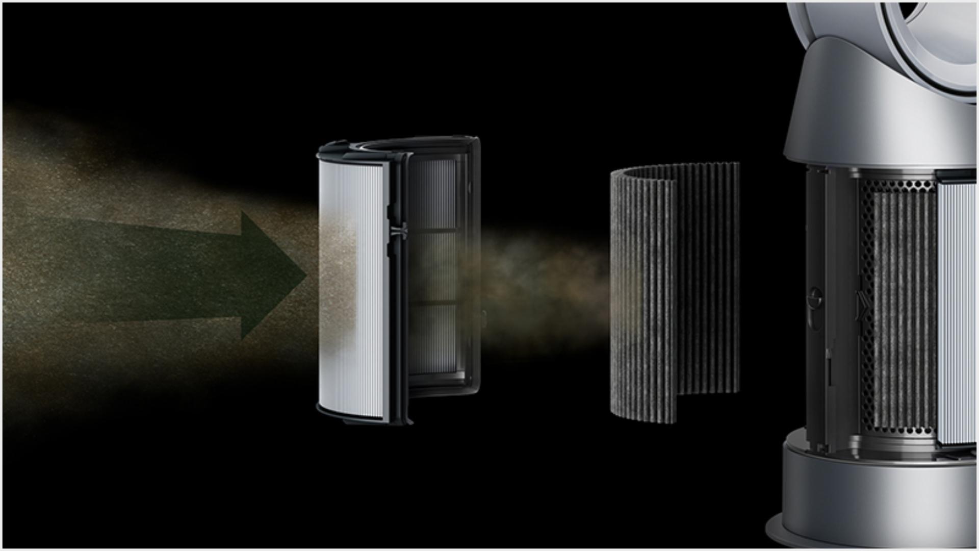 Dyson air purifiers combine intelligent sensing with an advanced HEPA H13 filtration system that captures gases2 and 99.95% of particles as small as 0.1 microns.1 Dyson air purifiers have powerful Air Multiplier™ technology to purify the whole room.3